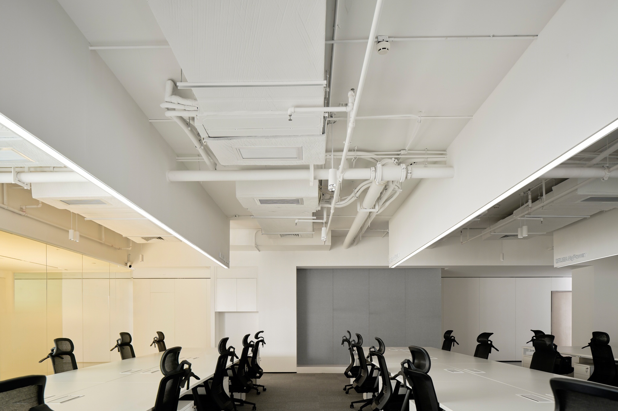 The existing space was a rigid rectangular floorplate, segmented by orthogonal partitions and limited natural light. The transformation began by softening the geometry—introducing curved walls and ceiling arcs to replace harsh corners and linear divisions. By breaking up visual symmetry and introducing concentric forms, the design encouraged organic flow and spatial layering. The resulting plan is both intuitive and fluid, guiding users from entry to work zones, meeting areas, and informal lounges through spatial cues rather than fixed walls.